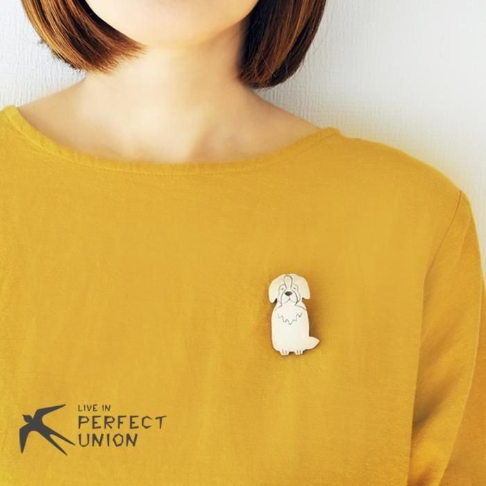 大きな体とやさしい瞳が魅力のセントバーナードをモチーフにした、ハンドメイドのボーンブローチです。 手仕事ならではの素朴な風合いが素敵で、使うほどに愛着がわいてきます。