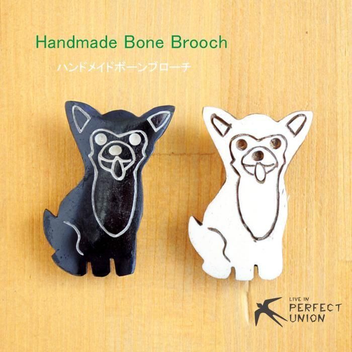 ちょこんと座った姿がかわいい、チワワのハンドメイドボーンブローチ。 手仕事ならではの素朴な風合いが素敵で、使うほどに愛着がわいてきます。